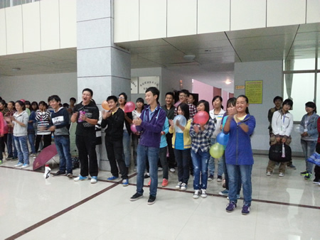 每天早6:10分“30分钟”广场团队竞技活动在培训楼前篮球场举行。活动在第1组所组织的《双人往返接力》活动中开始。30分钟中,第1组8个成员分别担任了讲解员,示范员,计时员,裁判员等职务,成功组织了其他五个组进行了两轮比赛,取各组最少用时排出了名次,算出各组单项活动积分。其后,由第二组组织了《心有灵犀》,第三组组织了《踩气球》,第四组组织了《夹气球》,第六组组织了《乒乓接力》等活动,每天篮球场上热闹非凡。由学工主任易瑜带队,第六届团总支、学生会主席团、各部门部长、实习部长们组成了现场评审团兼啦啦队,为新干部们加油鼓劲之余不忘认真观察各组表现。