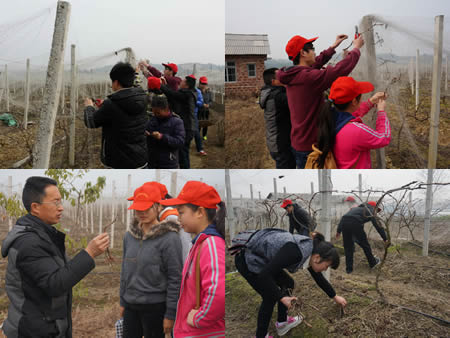志愿者们在我系学工副主任易瑜、园林专业教研室主任曾玉华老师带领下来到中阳村葡萄种植基地,在老师的指导下进行扦插育苗和勤园工作。志愿者们忙碌在基地各处,干劲十足地对葡萄插条剪段、搬运培养土、清理葡萄园内杂乱枝条。