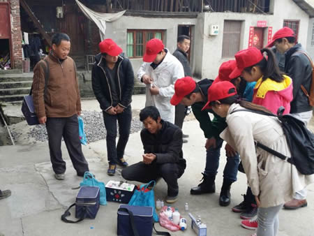 每年的3月中下旬,新化县畜牧局都会组织各乡镇兽防站工作人员集中开展“春季防疫”工作。我系“绿色行动队”以此为契机,我系学工副主任易瑜组织畜牧兽医专业志愿者到新化县琅塘镇的基层畜牧水产防疫站参与“春防”工作,通过实际操作巩固专业知识,强化技能训练。