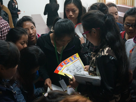 会后男、女生部发放了寝室门贴,对“干部示范寝室”、“党员示范寝室”进行挂牌。(易非 耿岳 管皓云)