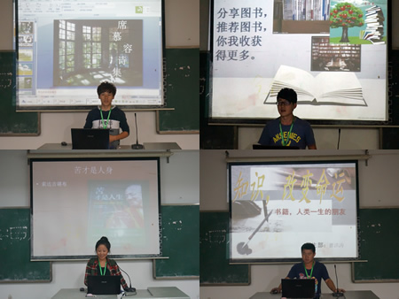 各部门干事们围绕“书香满园”主题,以PPT展示为手段,与大家一起分享自己喜欢的图书。其中来自系团总支的向荣云为大家推介《席慕容诗集》,他充满感情的朗诵感染了在场同学们;来自宣传部的管皓云为大家推荐了《钢铁是怎样炼成的》等,见解独特。来自男生部的瞿洪涛从专业学习到休闲娱乐,从文学著作到励志读本为大家全方位展示了他的阅读视角,谈吐朴素。本次论坛有13位来自各部门的13级干事上台发言,分享者结合自身的阅读体验,讲述自身对读书的认识和书籍给予的启示,以及读书带来的乐趣等……现场聆听师生,共同感受了书籍带来的心灵涤荡。