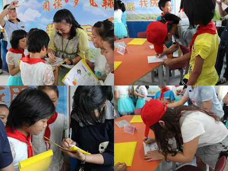 故事会后小读者纷纷找易瑜和“绿蚂蚁”们签名留念,大家体验了一把明星的感觉!