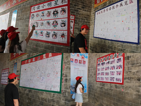 “绿蚂蚁”们参观有自己一份功劳的扶洲小学“梦飞翔”阅读活动成果展板