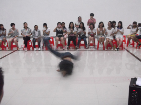 首先由学团干部特别奉献的歌舞《小苹果》舞拉开了晚会的帷幕,在一开始便吸引住了全场观众的眼球。14级新生表演的街舞深深地hold住了全场。互动游戏中,大家更是满怀期待,积极参与,推动晚会进入高潮,最后在激情与运动的交融中结束了本场晚会。