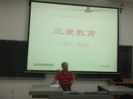 首先,周院长对新同学的到来表示了热烈的欢迎,并以主人翁的身份向新同学介绍了娄底的历史文化及地理环境等。接着对学院的历史、学校的学习环境、师资力量、教学水平、人才培养模式等各个方面进行了全面的介绍。然后就大学生该如何看待人生、如何做人、怎样学习做出了指导。