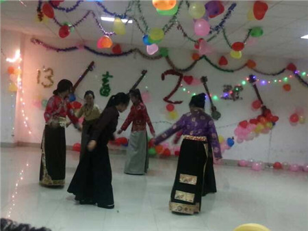 首先由班长及带领班干部对朱主任及各位到场的老师表示热烈的欢迎,并且送上了诚挚的祝福,晚会伴随着来自西藏独特的旋律中开始了,本次晚会主要分为三大板块,第一为舞蹈表演,同学们纷纷跟随着旋律载歌载舞,为在场的老师及同学们展现出了浓厚的西藏民族舞蹈风情;第二为独唱,浑厚朴实的嗓音便是藏族孩子们的优势所在了,唱出了民族风俗,也唱出了自己的特色;第三为小品,同学们自己编排的小品,虽没有专业人士那么严谨,但也逗得在场所有人哈哈大笑。晚会在一片祥和的氛围中逐渐走向尾声。