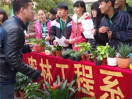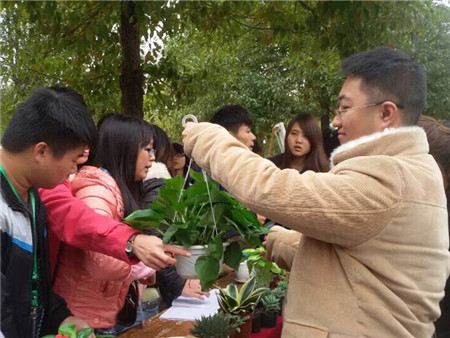 活动开始,学生会代表们提前进行场地布置,并设置了服务台以方便大家询问植物养护方面知识。在大家互相配合以及明确各自分工下,活动有条不紊的进行。