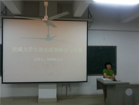 5月26日晚,我系在主教楼410教室举行了由学工主任朱勇志主持、系主任刘梅秋主讲的“西藏大学生就业政策解读与对策”专题讲座,各位辅导员及13级全体西藏学生聆听讲座。