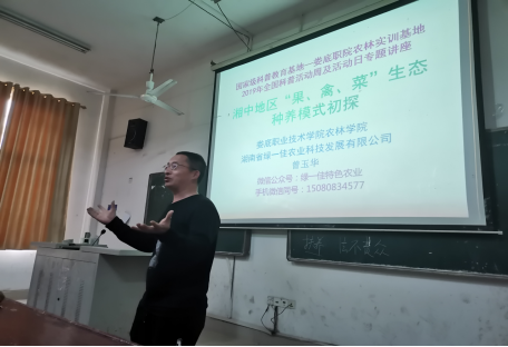 最后王书记点评,人生无回程票,每个时间点应做好该做的事。修德,选择,从小事,平时,细节做起。务实,落实行动上,不夸夸其谈,做事要踏实有责任。宣讲活动结束后,9点40分所有人在主教楼102入座,曾玉华老师对“花,禽,菜”生态模式活动主题进行讲解。提出理论应与实践相结合,不纸上谈兵,汗水的付出,实践的累积,实践远比理论重要。对于种葡萄,曾玉华老师亲自打药,走访各个地区不断学习,积累经验,实施(果+草)禽循环模式,大大的提高各方面的产量和质量。