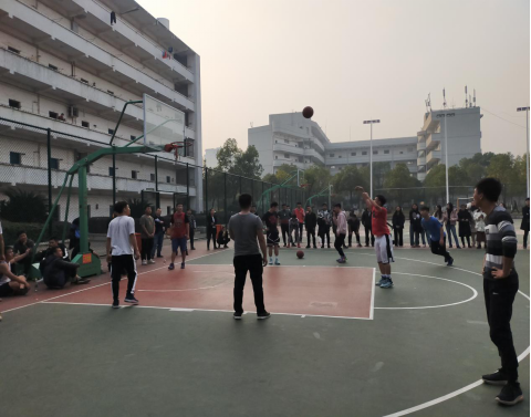 比赛开始前,操场的周围围满了前来观看的同学们,参加比赛的队员们也热情高涨,跃跃欲试。紧接着,激烈的篮球赛开始了。现场的气氛急剧攀升,比赛的双方很快就进入了角逐的状态。在场的其他同学们用他们的喊声来表达着自己的情感,为自己的队伍加油。比赛的双方也越来越有激情,用各种各样的篮球技巧和精准的投篮为自己的队伍贡献了一分又一分。上半场结束了,三班以29:22的比分领先着。