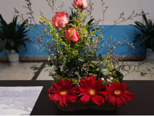 经过了一个小时的创作时间,呈现在我们眼前的是一个个花香四溢,精巧的艺术作品,参赛选手借助插花艺术作品表达着对生活美好的祝福,随后由四位评委老师对每组作品进行评价和打分,最终评选出一个一等奖高伟琴(第十二组代表)、两个二等奖、三个三等奖和若干个优胜奖。