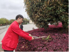 春风十里,“雷力锋行”身披火红绶带的志愿者们在孙水河公园里有条不絮地展开志愿服务活动。他们或是在清扫公园的树叶;或是在修剪花木杂草。