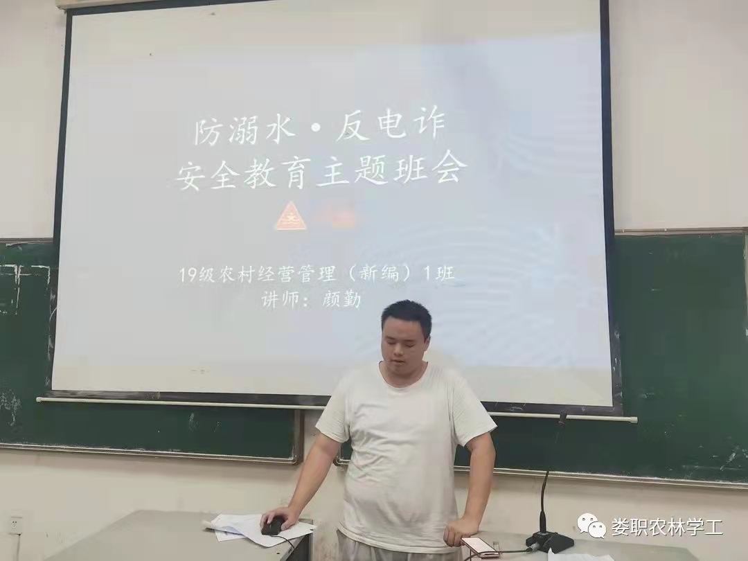 电信诈骗在校园内愈演愈烈,广大高校学生是电信犯罪的主要侵害对象。为进一步打击电信诈骗犯罪,全面净化高校学习环境,有效保护高校同学们的财产安全,2021年9月21日,19级农管(新编)1班在辅导员颜勤老师的指导下于主教楼111室召开防溺水·反电诈安全教育主题班会,本次班会由班长刘志林主持,全体同学参与。