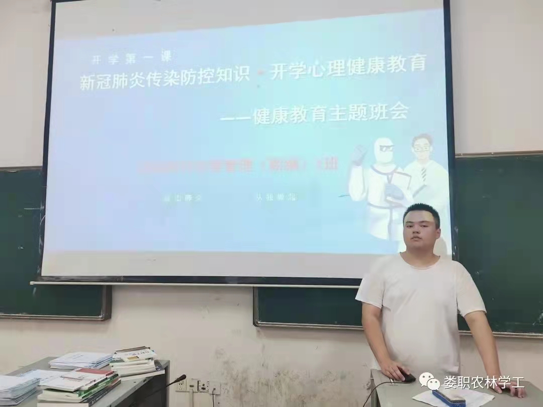 班长刘志林跟同学们强调校园疫情防控的各项注意事项,从学会正确洗手到科学选择口罩,从学习防控知识到关注防控形势,帮助同学们增强责任意识和防护意识。不仅如此作为大学生来说我们不仅要自我保护,隔离生理上的病毒,也要隔离心理上的病毒焦虑、抑郁、强迫等,为此刘志林向同学们普及了心理知识,让同学们更加了解了大学生的心理健康标准表现在哪方面,有利于认识心理健康的重要性,以积极的心态认识心理问题,同时主动寻找正确的途径解决问题。