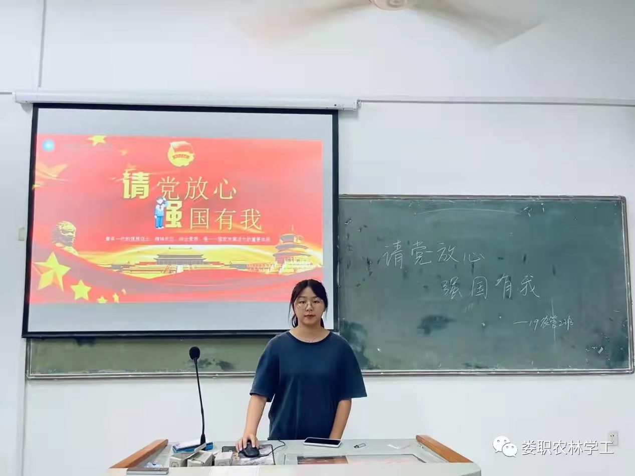 青年一代的理想信念、精神状态、综合素质,是一个国家发展活力的重要体现。为了进一步提升学生的理想信念感,19级农管(新编)2班辅导员曾旭组织班级学生开展以“请党放心,强国有我”为主题的团日活动,由团支书邱燕芝主讲。