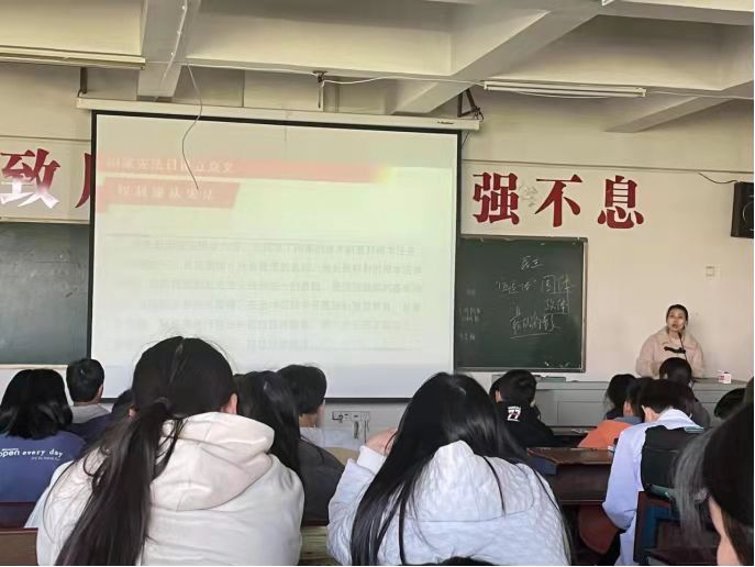 为了让学生了解宪法,认识宪法,培育学生国家意识、法制意识、社会责任意识。2021年12月6日下午,辅导员柳菲老师组织21级动医1班、21级动医2班、21级农管1班、21级农管2班、21级园艺1班全体同学在主教楼410多媒体教室开展“学宪法,讲宪法”的主题班会。