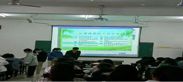 首先,副班长王凌峰同学向同学们强调了心理健康的重要性,心理健康的理想状态是保持认知正确、情感适当、态度积极、行为恰当的状态。然后,副班长王凌峰同学便让同学们看向屏幕,进行了一系列关于对心理健康的提问,活动中同学们都表现得十分认真。活动最后,副班长王凌峰同学带领着同学们朗读了一汪国真的《热爱生命》,在朗读的过程中同学们感受到如这首诗歌一样:“我不去想身后会不会袭来寒风冷雨,既然目标是地平线,留给世界的只能是背影。