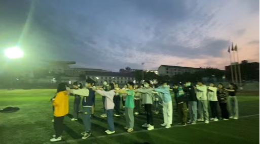 4月4日晚上七点,活动开始,辅导员首先组织同学们戴好口罩围坐一起,然后辅导员开始向同学们讲解活动规则和流程。活动分为三个环节 ,分别是踩气球大作战、过人桥大赛、蒙眼抓人游戏。游戏环节一轮接一轮,大家也玩得津津有味,乐在其中,欢声笑语环绕于傍晚的田径场中。最后游戏结束后,辅导员向同学们强调一定要做好个⼈防护和保证⾃⾝安全的措施。相信春暖花开之时,疫情一定会早日结束。