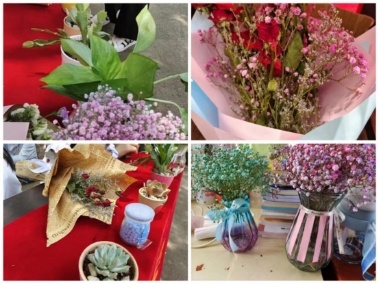 活动期间,现场工作人员准备了上百份花卉绿植,整齐的摆放在兑换台上,那些美丽的干花束和可爱的多肉绿植吸引了大量的同学围观和咨询,同时也有许多同学回到宿舍取来塑料瓶、废纸来进行兑换,还有的同学因为没有准备而换不到自己想要的绿植感到苦恼。