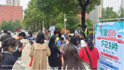 2022年5月,农林工程学院团总支充分结合全校学生实际需求,举办“绿色兑换”活动。此次绿色兑换活动是为提高我校大学生的环保意识,通过以物换花 、以旧换绿的一种环保活动,号召大家将废旧的纸张、书本等可回收物品收集起来,用于兑换精美的绿色植物。此次活动意义在于调动我校学生参与环保活动的积极性,养成低碳环保的好习惯,树立绿色低碳生活的良好意识。
