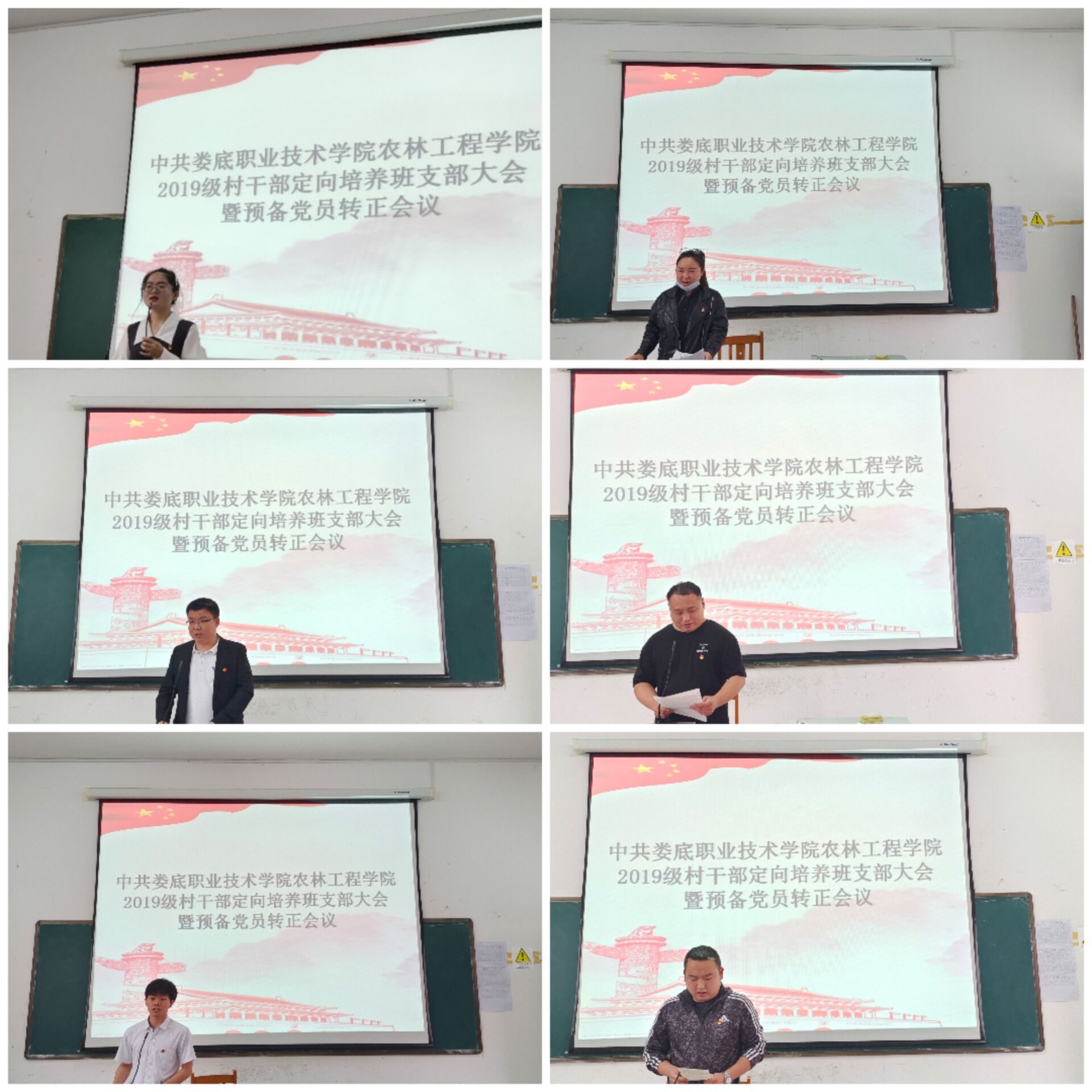 2022年5月27日,我院2019级村干部定向培养班党支部于新培楼327课室召开该专业2019级第一批预备党员转正会议,讨论关于刘凯豪、刘俊君等43名同志申请转为中共正式党员的问题。出席本次大会的有农林工程学院院长禹华芳、党总支书记王冬青、学工副院长王琦、支部书记谭京瑚,以及支部17名正式党员、43名预备党员。