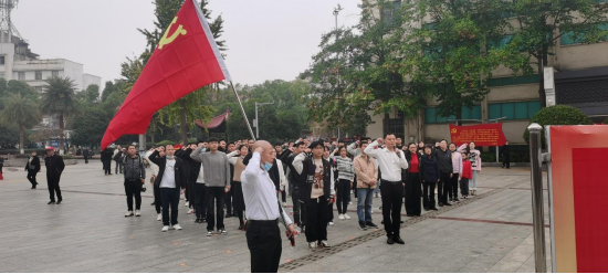 “我志愿加入中国共产党,拥护党的纲领,遵守党的章程,履行党员义务,执行党的决定......”面对鲜红的党旗和“蔡和森同志光辉一家”群雕,全体党员在20级村干部定向培养班党支部支部副书记扶建武的带领下举起右拳,重温入党誓词,铿锵有力的誓言响彻纪念馆。