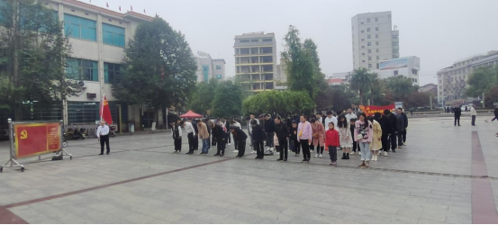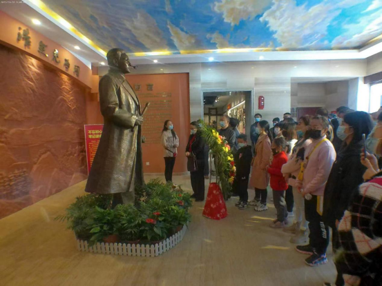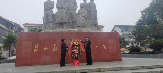 来到蔡和森广场,全体人员肃立向蔡和森同志雕像三鞠躬,并由农林工程学院党总支书记王冬青书记和村干部定向培养班项目负责人刘梅秋院长为代表向蔡和森同志雕像敬献花篮。