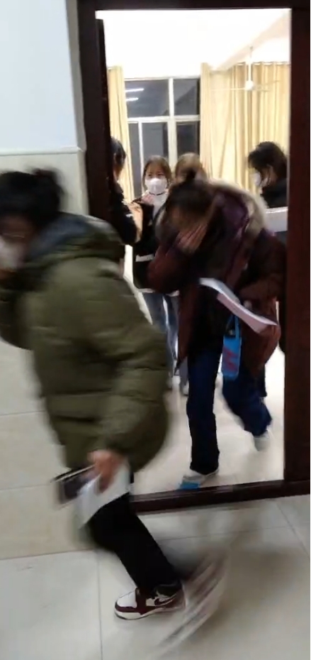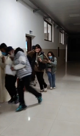 “同学们,教室起火啦,快走。”辅导员发现火情后立即通知班级学生,各班级干部和在现场的其他辅导员们按照演练方案前往火情发生的教室疏散学生、观察情况并作出相应处理。学生们立即做出反应,捂住口鼻,有秩序、有纪律地按逃生路线离开教室到达安全地带,在演练过程中,辅导员全程陪同指挥。当学生来到安全区域时,立即清点人数,确保每一个学生安全归队。