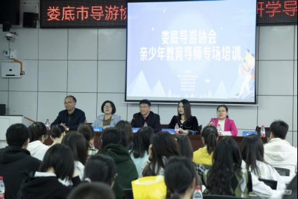 为进一步提高旅游管理专业研学旅游服务水平、推动研学旅游人才高质量发展,2023年3月16日-17日由我校参与主办的2023年“娄底市导游协会亲少年教育导师专场培训”活动在娄底市人文科技学院开展。湖南人文科技学院、娄底职院技术学院、娄底潇湘职业学院旅游管理学生、研学导师共计140余人参加培训。