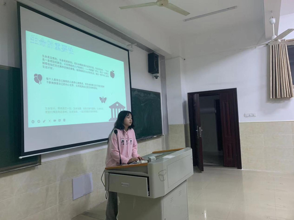 班会开始,心理委员首先提出“珍惜生命是绽放自己人生之花的最好方式”的观点,让同学们体悟到生命的价值,警醒同学们要珍惜生命。不能凭着一念冲动就断送美好的青春年华。接着,同学们观看了一个简短的心理教育视频,其中包含对于生命的看法,还提到了生活如鲜花,而生命则是支持鲜花的根茎,此外,视频中还记录了生命中令人感动的瞬间,这让同学们感触颇深,使得同学们感受到生命的美好与珍贵。在班会的尾声,心理委员杨恩再次向同学们强调要珍惜生命,不断发现生命中的美好。