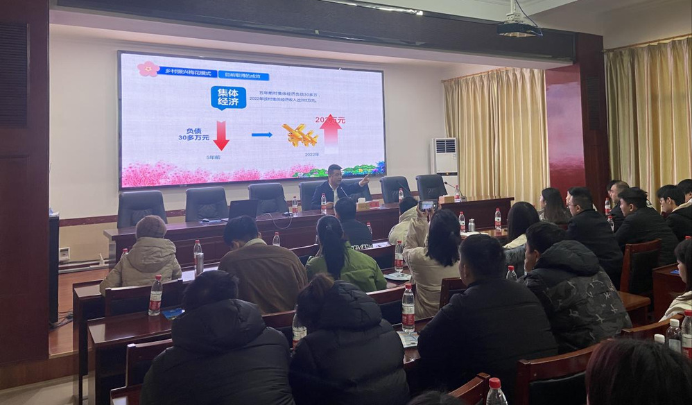 12月1日,21级村干班学员在负责人刘梅秋与指导教师张文泉、刘建才、柳菲、贺汝来、颜勤的组织下,来到了衡阳县梅花村学习。首先,我们听取了村总支部书记刘准《乡村振兴美化模式》专题讲座。梅花村利用交通区位优势,通过土地制度改革创新、发展集体经济模式创新、乡村治理模式创新、党员积分管理创新、管理村民小组长的创新等5个创新发展举措,将休闲观光、农事体验、农业科普、农业研学、机械作业与“种、养、加”融为一体,集体经济得到大的发展,村民参与项目入股,村级集体经济有5年前的负债30多万到2022年盈利202万元,村民人均收入突破3万元,整个村庄旧貌换新颜。梅花村通过乡村治理模式创新,产业活力,党组织的凝聚力增强了,群众的积极性提高了,借助农旅融合的乡村振兴进入了快车道。