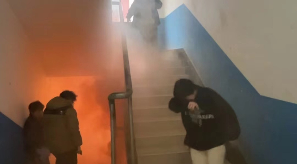 下午全体参演人员各就各位,随着消防应急广播播报火灾险情,消防演练正式拉开了序幕;各楼层负责人员参照演习预定方案,迅速组织学生紧急疏散,及时逃离火灾现场,整个过程有条不紊的进行。