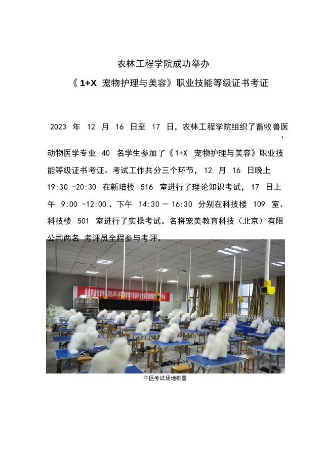 农林工程学院成功举办 《1+X 宠物护理与美容》职业技能等级证书考证