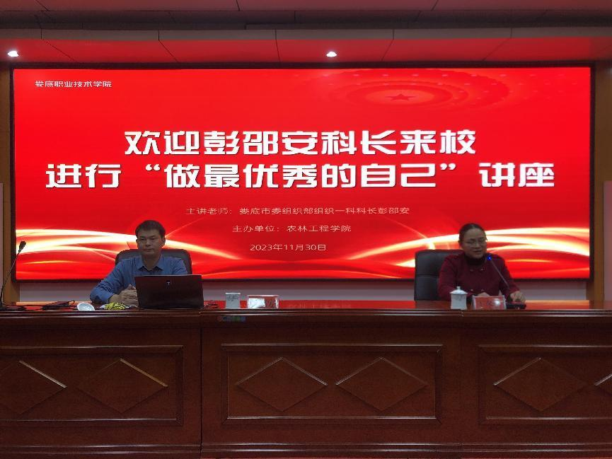 为了助力娄底职业技术学院农管专业搭建未来职业发展的平台,培养出杰出的农管人才,娄底市委组织部刘波科长和彭邵安科长于2023年11月23日和11月30日下午,在娄底职业技术学院主教楼二楼多功能报告厅,为21、22、23级农管专业学生及发展对象们进行了精彩的专题讲座。农林工程学院院长禹华芳、党总支书记王冬青、副院长谢大识、王琦以及专职辅导员们参加了本次讲座。