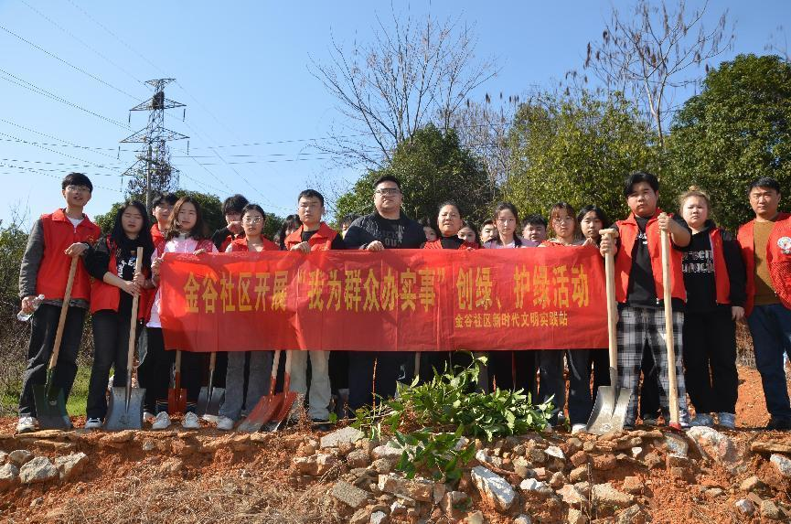 下午2:30分,农林工程学院志愿者团在新培楼前坪集合,由曾旭老师带队,志愿者排着整齐的两条队伍一同前往金谷社区;首先金谷社区欢迎志愿者们的到来。接着,金谷社区康书记给志愿者们讲解了本次植树活动相关内容以及注意事项,下午3:30分,农林志愿者们跟随社区工作者们来到娄底市体育馆后山,进行相关植树活动最后。志愿者们和社区人员一同在后山规定的种植区域种植树苗。