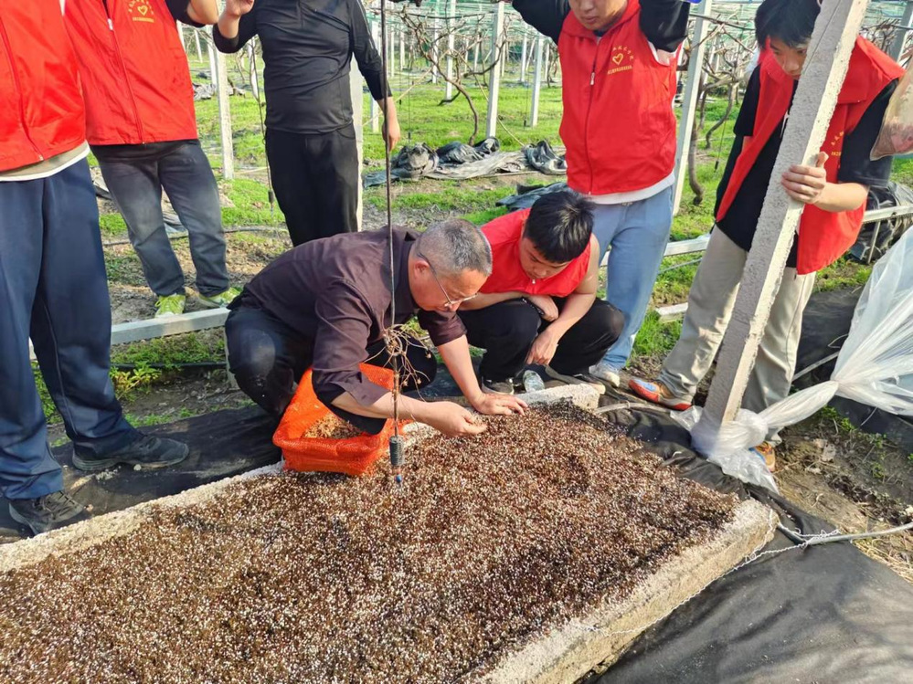 在活动期间,志愿者们积极投身于葡萄扦插种植育苗的实践工作之中。志愿者们的热情与专业精神得到了基地工作人员的高度评价。此外,志愿者们还参与了对地面铺育苗基质种植黄精的工作。志愿者们将特制的育苗基质均匀铺设在地面上,然后将黄精种苗精心植入其中。此种基质乃由多种有机物质精心混合而成,兼具优异的透气性与保水性,能够为黄精的生长提供充足且必要的养分与水分。