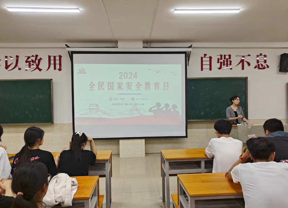 2024年4月14日晚上,由辅导员朱静姝老师带领23级农管1班,23级园艺1班,23级畜牧1班2班3班 五个班级在主教楼610教室开展了以“415安全教育日”为主题的班会。本次主题班会,旨在提高同学们的国家安全意识,增强国家安全观念,让大家认识到国家安全的重要性。