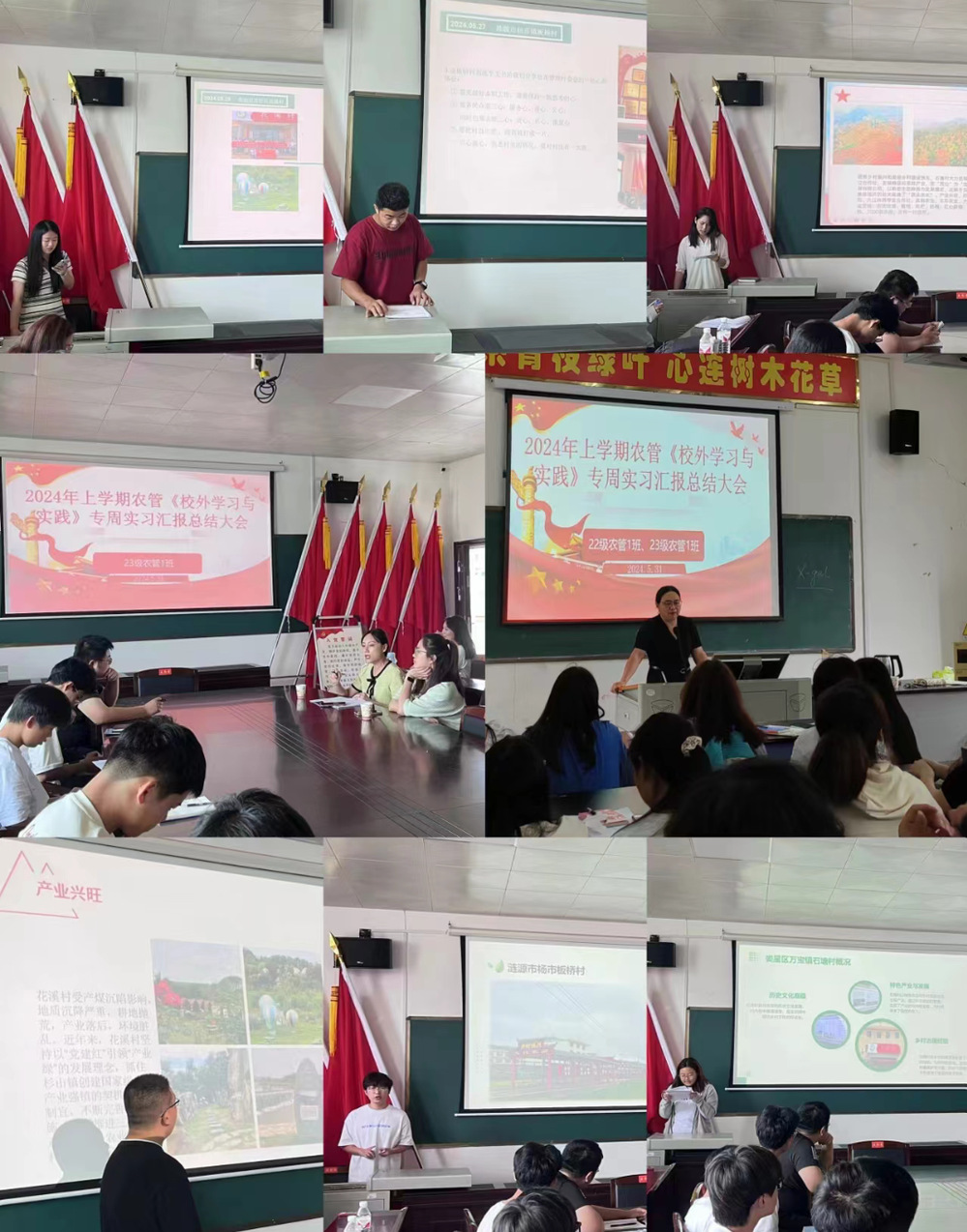 根据我国乡村振兴战略规划,乡村治理是全国农村工作的核心任务之一。为了提高农林工程学院村干部班级学生的乡村治理理论水平和实践能力,培养一批懂农业、爱农村、爱农民的基层干部。农林工程学院于2024年5月27日至5月29日组织2022级和2023级村干班学生赴涟源市杨市镇板桥村、娄星区万宝镇石塘村、娄星区杉山镇花溪村三个全国乡村治理示范村展开校外实训周的学习。5月30日在主教楼多功能报告厅听取彭育晚书记的讲座。5月31日在新培楼510农林工程学院党总支书记王冬青组织实训总结大会并做出重要讲话,在新培楼510开展班级小组总结与交流。