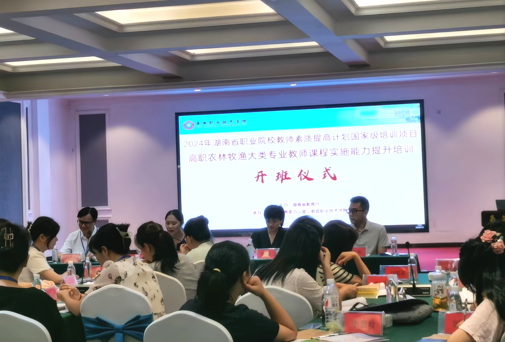 2024年7月15日下午,“职业院校教师素质提高计划2024年国家级项目——高职农林牧渔大类专业教师课程实施能力提升培训”开班仪式在娄底职业技术学院举行,来自14所兄弟院校40名学员参加研修。本次研修班由湖南省教育厅主办,省职教培考委办公室、娄底职业技术学院承办。开班仪式由学校教务处长朱燕教授主持。