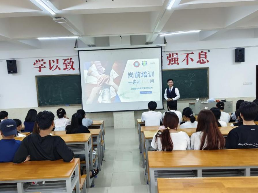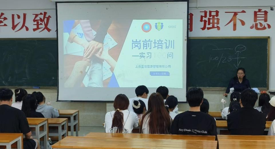 为了进一步深化校企合作,拓宽旅游管理专业学生实习就业渠道,2024年9月24日下午农林工程学院对2022级旅游管理专业开展实习就业教育。本次活动特邀上海亚湾酒店管理有限公司总监沈敏为主讲嘉宾,教研室主任喻彩霞主持。