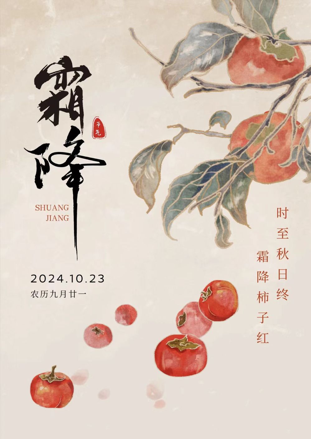 霜降节气在中国民间有着丰富的传统习俗和文化内涵。比如,吃柿子是霜降时节的一大特色。俗话说“霜降吃了丁柿,不会流鼻涕”,人们认为霜降时节的柿子具有润燥防寒的功效,能预防冬天嘴唇干裂。此外,还有吃鸭子进补的传统,俗称“贴秋膘”,为即将到来的寒冬储备能量。