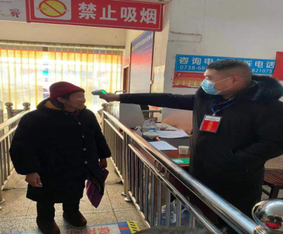 2021年1月20日星期三,邓丁丁同学来城中社区管辖范围湘运汽车站进行疫情防控志愿者。手里拿着体温枪对每位来往的乘客进行体温测量并且进行登记,保证了乘客们的乘车安全。