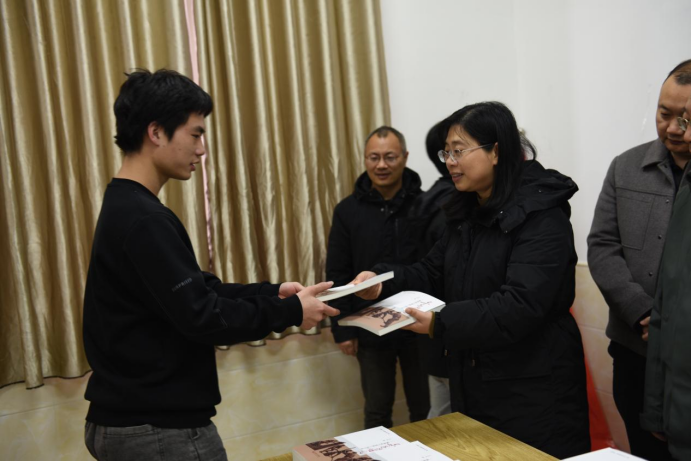 最后,领导们给学生代表赠送图书。