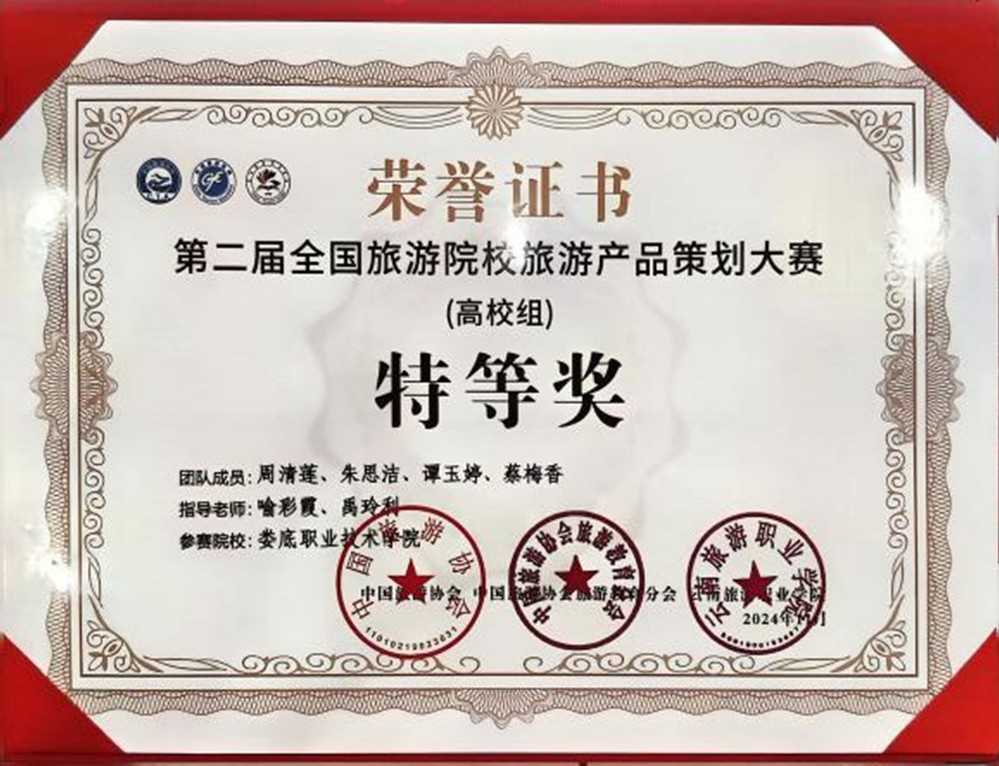 我校农林工程学院旅游管理专业以学生周清莲、朱思洁、谭玉婷和蔡梅香为参赛选手的“田园智行者”代表队,荣获第二届全国旅游院校旅游产品策划大赛高校组特等奖;以石薇、蒋婷、龚朵南、舒子晋为参赛选手的“雨林傣韵探索队”代表队,荣获本赛项高校组优秀奖;娄底职业技术学院获得“优秀组织院校”奖。本次大赛分为高校组和中职组,在高校组中,旅游类专业高职院校与本科院校同场竞技,这是我校参赛全国旅游院校旅游产品策划大赛以来,首次获此殊荣!
