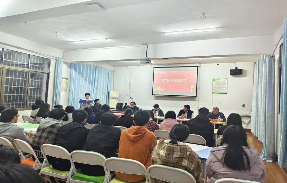 会议第五项是同学代表苏小妹发言,她表达了对退伍老兵的崇高敬意以及对年轻一代激励,鼓励同学们学习老兵自强不息,刻苦钻研,精益求精的精神,为国家和民族的发展做出贡献。