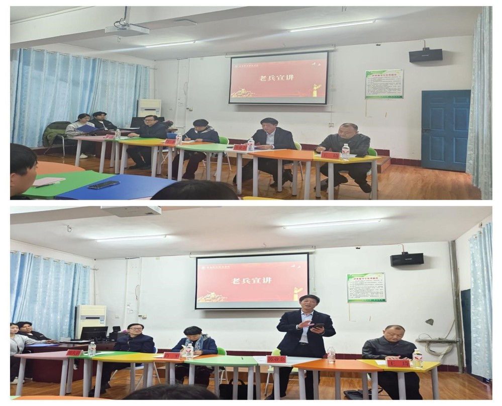 2024年11月21号下午在“一站式”学生社区开展了“延续红色血脉,汲取奋进力量”的老兵宣讲仪式。此次宣讲仪式由农林工程学院副院长王琦主持,市退役军人事务局法务科科长肖平、农林工程副院长谢大识、最美退役军人及冷水江村支书苏业余以及三十几名同学参与。本次仪式目的是为了让同学们了解退伍老兵的英勇事迹和奉献精神,为青年一代树立榜样,传承爱国主义精神。
