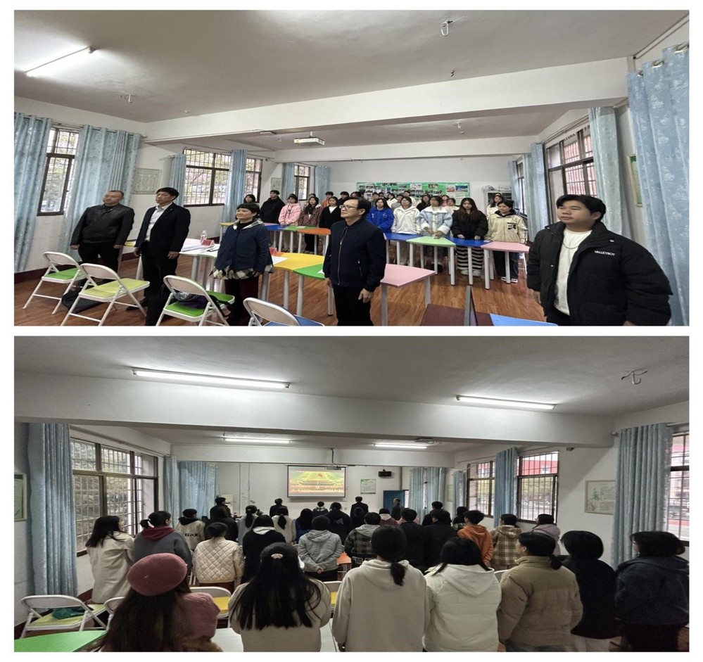 仪式第一项是全体起立奏国歌,在此,同学们认真的注视着屏幕奏唱国歌,表达了同学们对祖国和国歌敬意。仪式第二项是由农林工程学院副院长谢大识做动员讲话,他提出我们应学思运贯通,知行合一,做一个对社会有用的公民。仪式第三项是由退役军人事务局法务科科长肖平介绍老兵宣讲团成员情况。