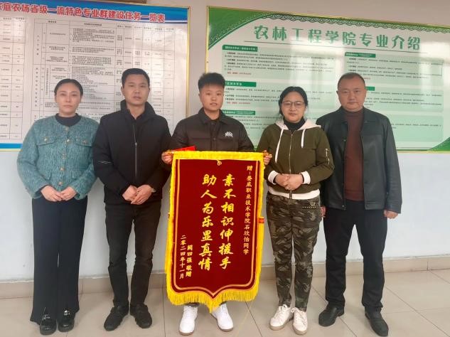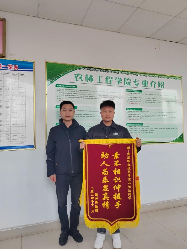 我校石欣怡同学的见义勇为行为,展现了学校教书育人理念的丰收成果,更彰显了社会的公平正义。11月20日下上午,学生家长专程携锦旗至我校农林工程学院与石欣怡同学及其辅导员亲切交谈,了解该生在校表现并再次表达了感谢,表示非常感谢学校培养出这么优秀的学生,赠予石欣怡同学“素不相识伸援手,助人为乐显真情”锦旗!