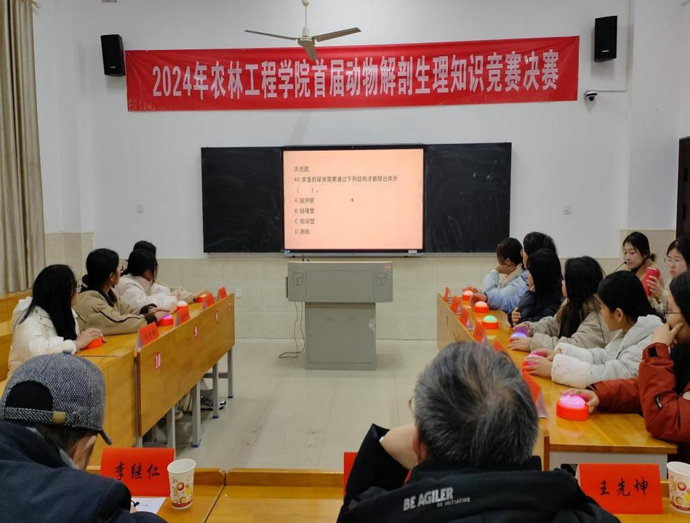 娄底职业技术学院农林工程学院首届动物解剖生理知识竞赛于12月27日晚上九点半在主教楼圆满落下帷幕。此次竞赛由农林工程学院党总支发起,教师党支部实施,动物医学与畜牧兽医两个教研室(党小组)共同策划和组织,旨在通过“以赛促教、以赛促学”的方式,提升学生对动物解剖生理知识的理解与实践能力,提高学院的育人质量。