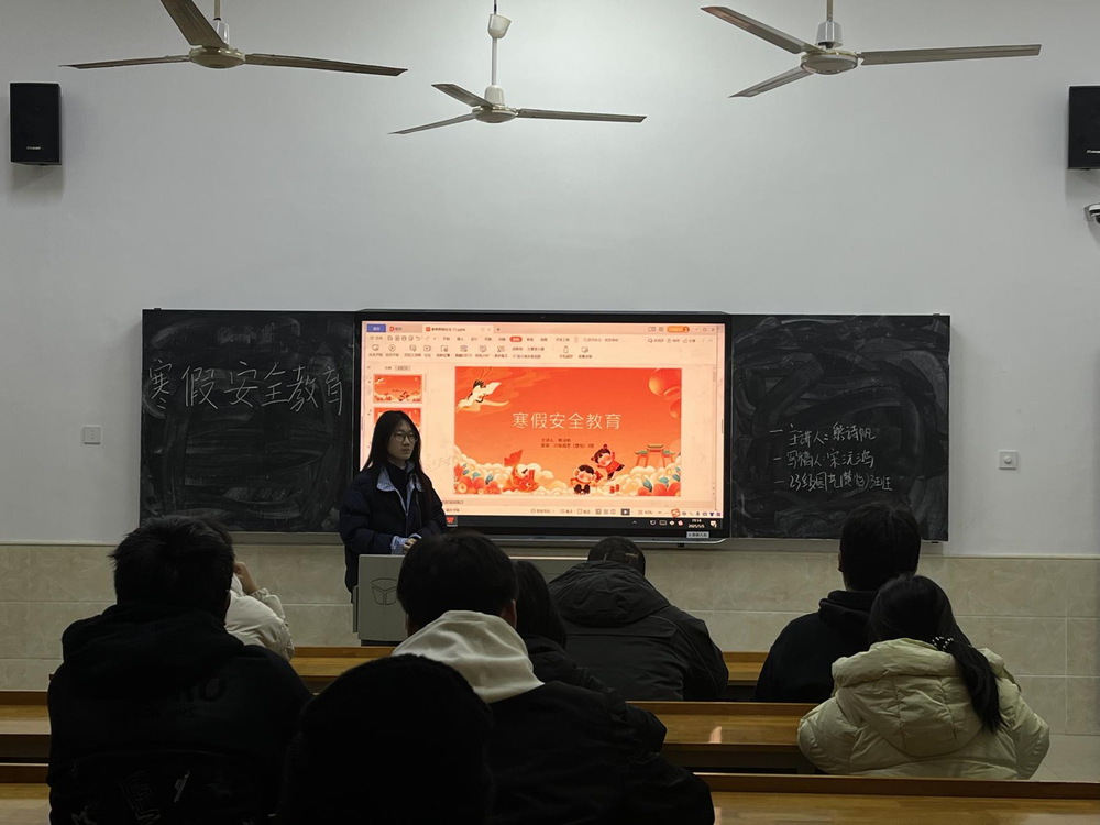 由于临近寒假假期,为了增强学生在寒假的安全意识,2025年1月5号23级园艺楚怡3班在主教楼104 开展了关于“寒假安全教育”的主题班会活动。会议内容由熊诗帆主持。